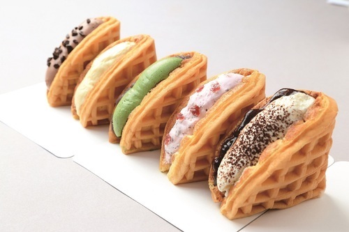 商品名:ワッフルケーキ一枚一枚丁寧に手焼きしたふわふわのワッフルにパティシエ特製の9種類のクリームをサンドしたワッフルケーキです。