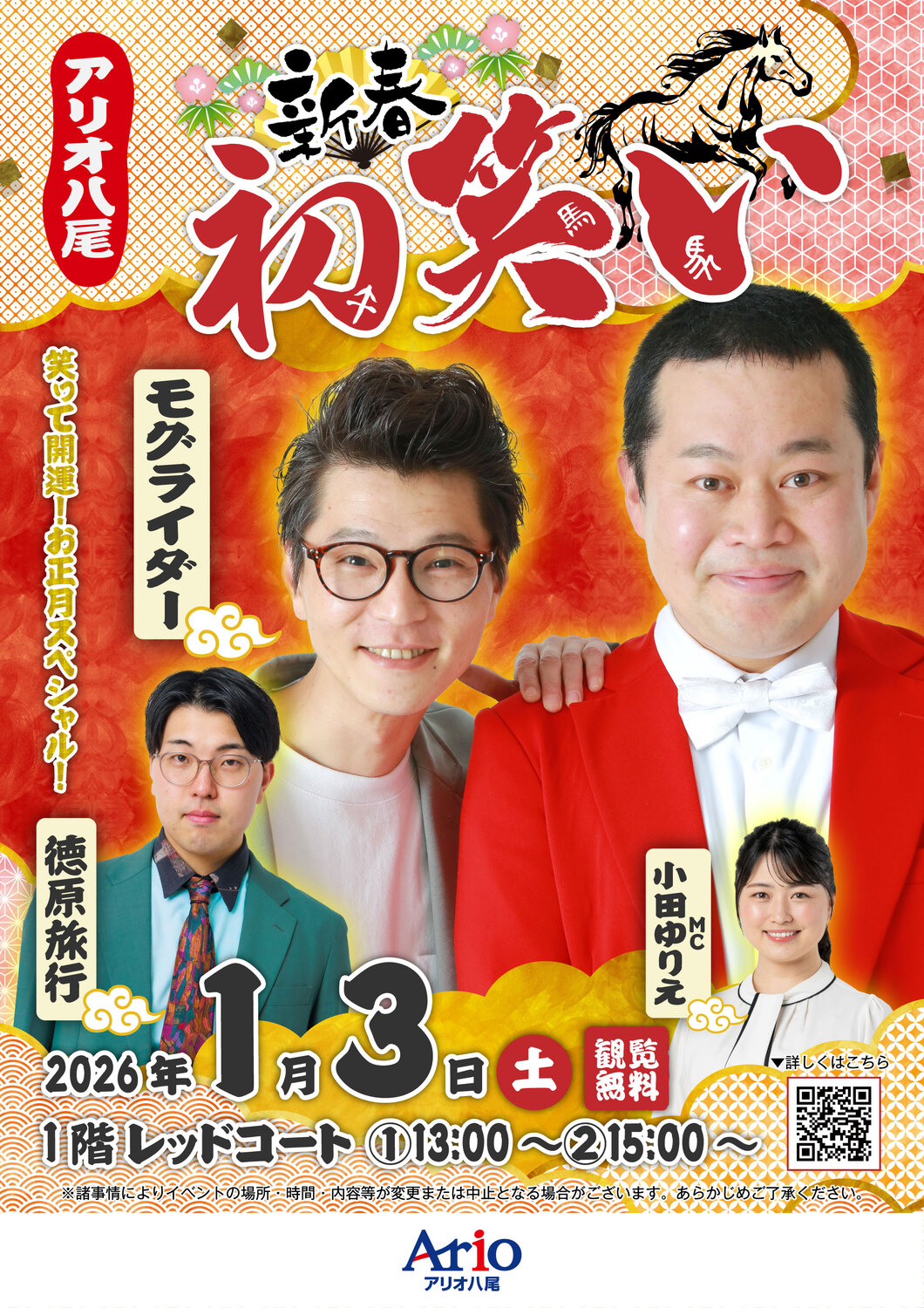 大人気お笑い芸人「モグライダー」がアリオ八尾にやってくる!