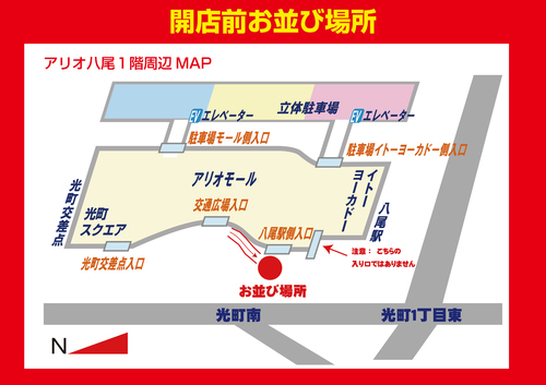 ■開店前のお並び場所:1階八尾駅側入口(道路沿い)