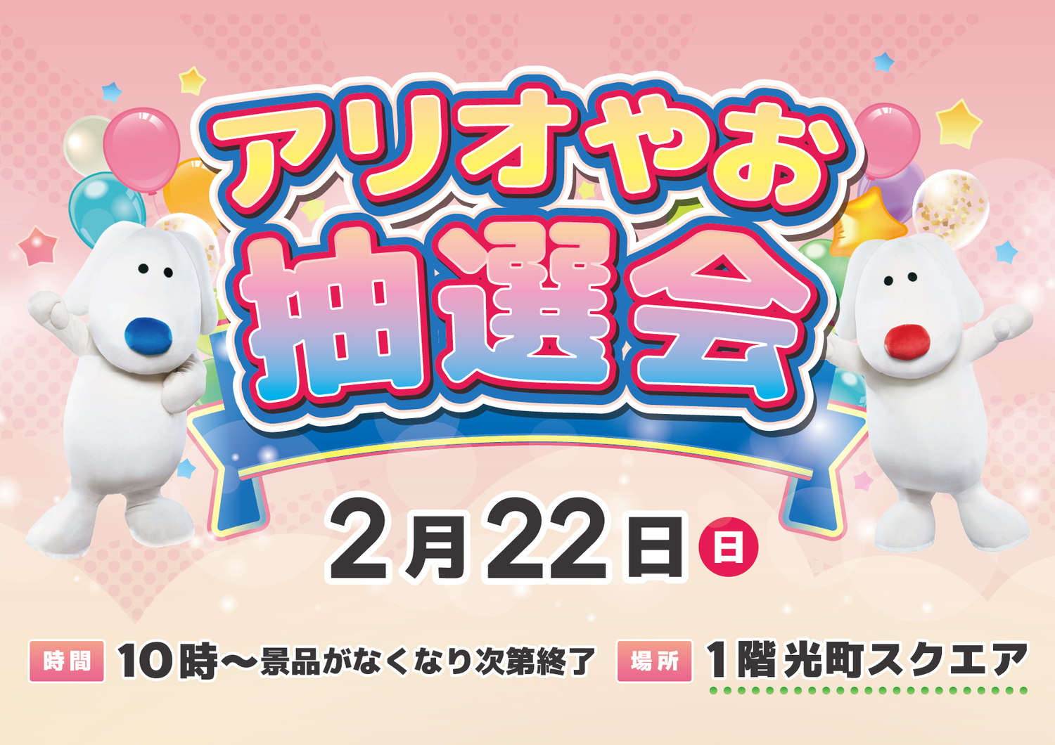 毎月第三日曜日開催のアリオの日ですが、2月15日(日)に抽選会は実施いたしません。
