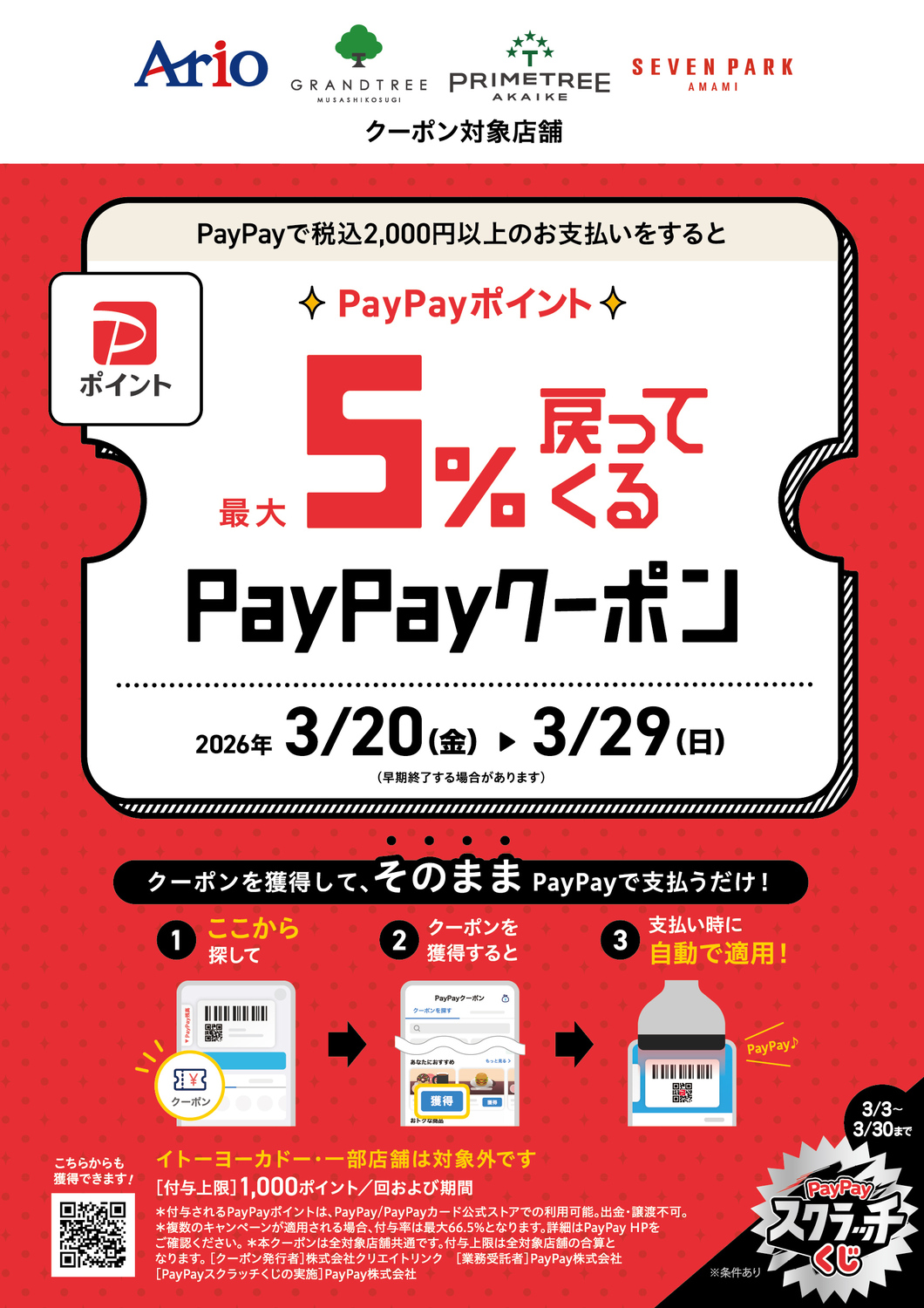 ※PayPay決済がご利用いただけないお店は対象外です。(ドミセなど)