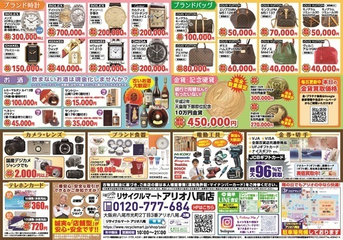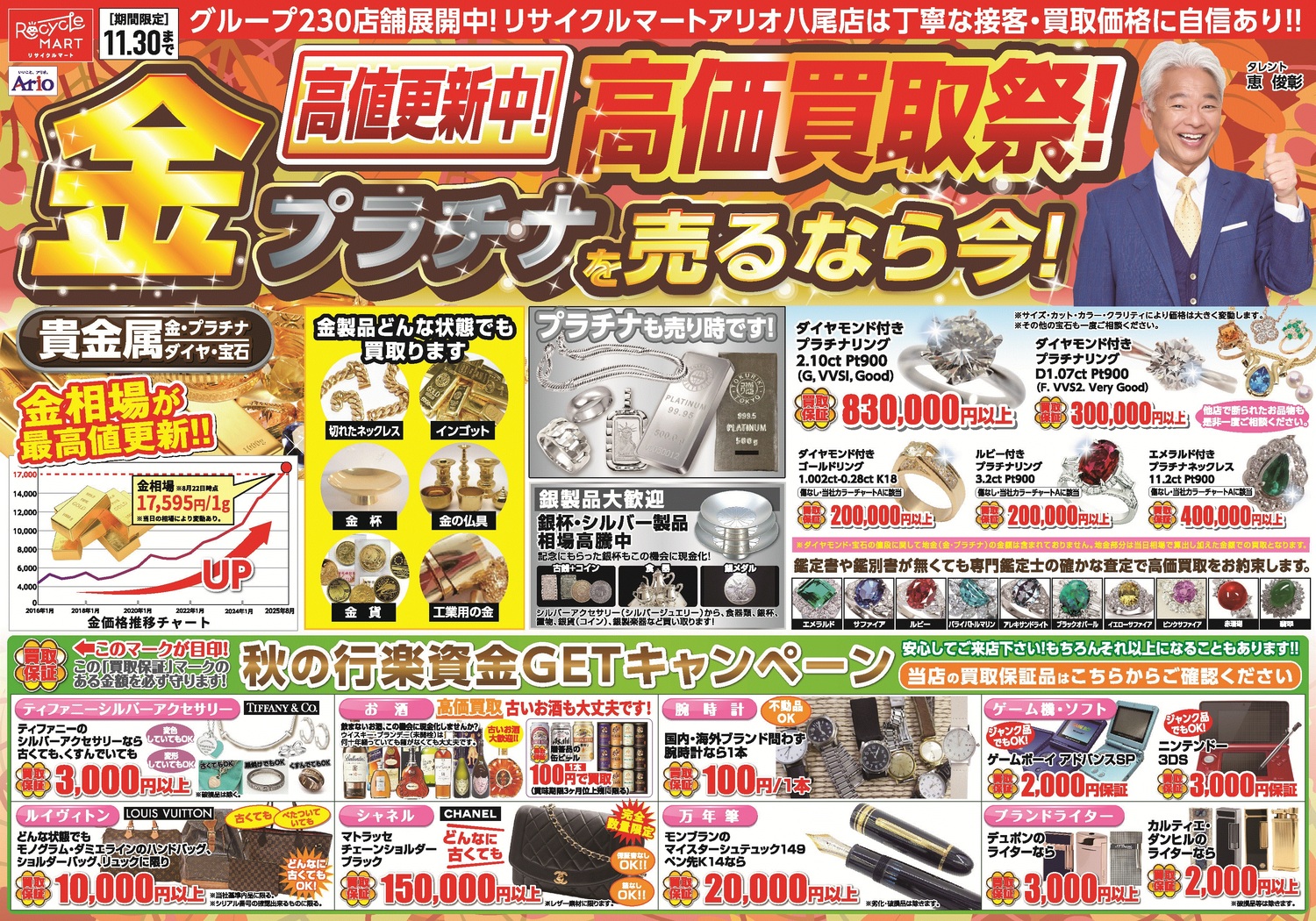 貴金属売るならリサイクルマートアリオ八尾店へ