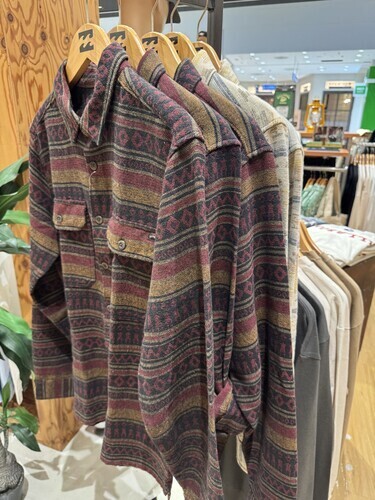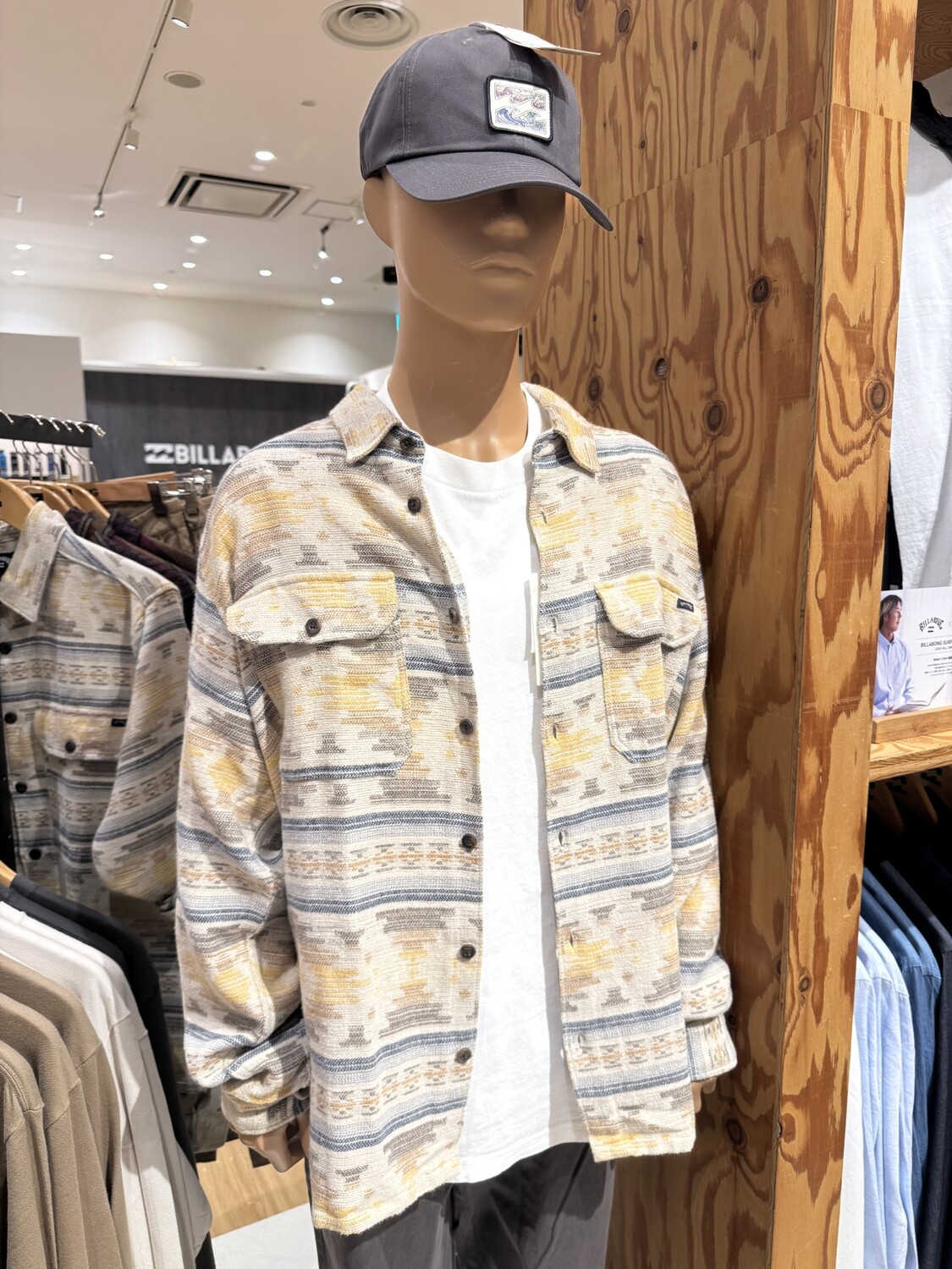 TCフランネル生地を使用したジャガードボーダーの長袖シャツ。両胸のフラップポケットがポイント。左胸ポケットにBILLABONGタグをさりげなくあしらいました。