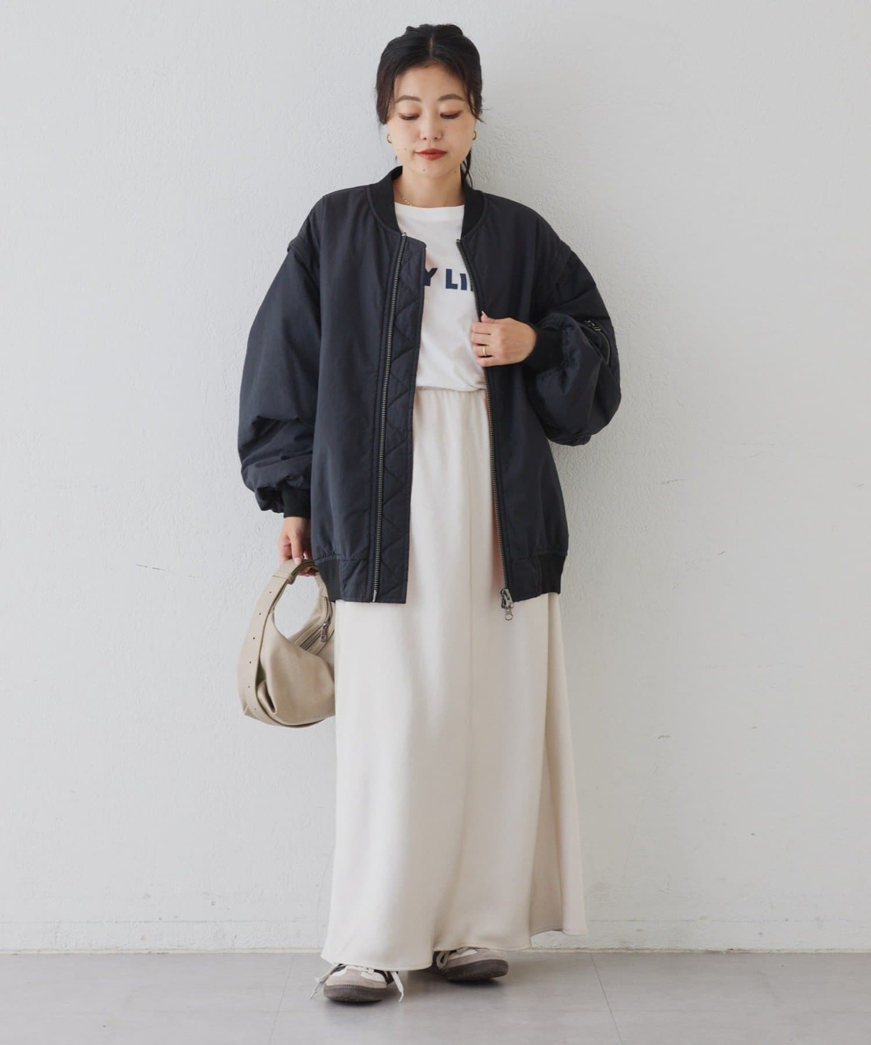 オーバー目なサイズ感はインナーにスウェットやニットも着こむことが可能で嬉しいポイントです。