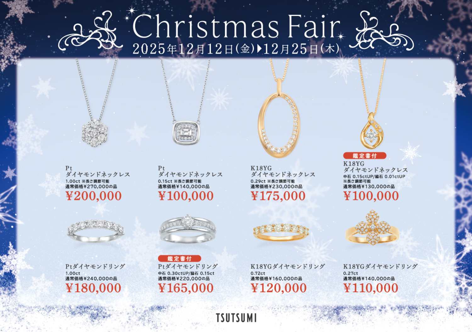 12/12(金)~12/25(木)の期間、ジュエリーツツミではChristmas Fair開催中♪