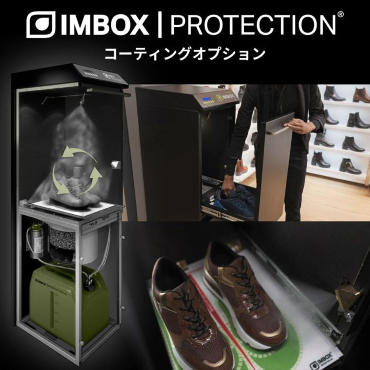■その名も『IMBOX(インボックス)』! 靴ケア先進国・デンマーク生まれの、世界中で愛されているシューズプロテクション・マシンです。 加工時間は、わずか1分! お値段も**880円(税込)ととってもお手頃。 マシンの中に靴を入れるだけで、あなたの靴に「見えない魔法のバリア」**をコーティングします。