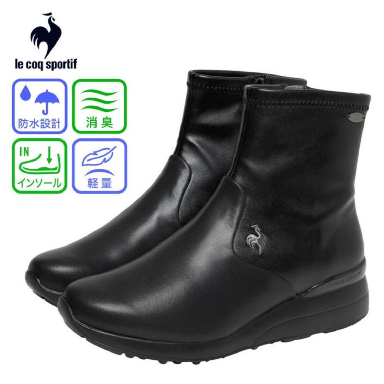 ■魅力2:足元ポカポカ「発熱・蓄熱インソール」 見た目はスッキリしていますが、中身はしっかり冬仕様。 インソールには**「発熱・蓄熱素材(ベルセラ)」を採用しており、体温を利用して暖かさをキープします。 さらに、ブーツにありがちなムレやニオイ対策として「消臭機能」**も搭載。冬の足元の悩みを全部解決してくれます!
