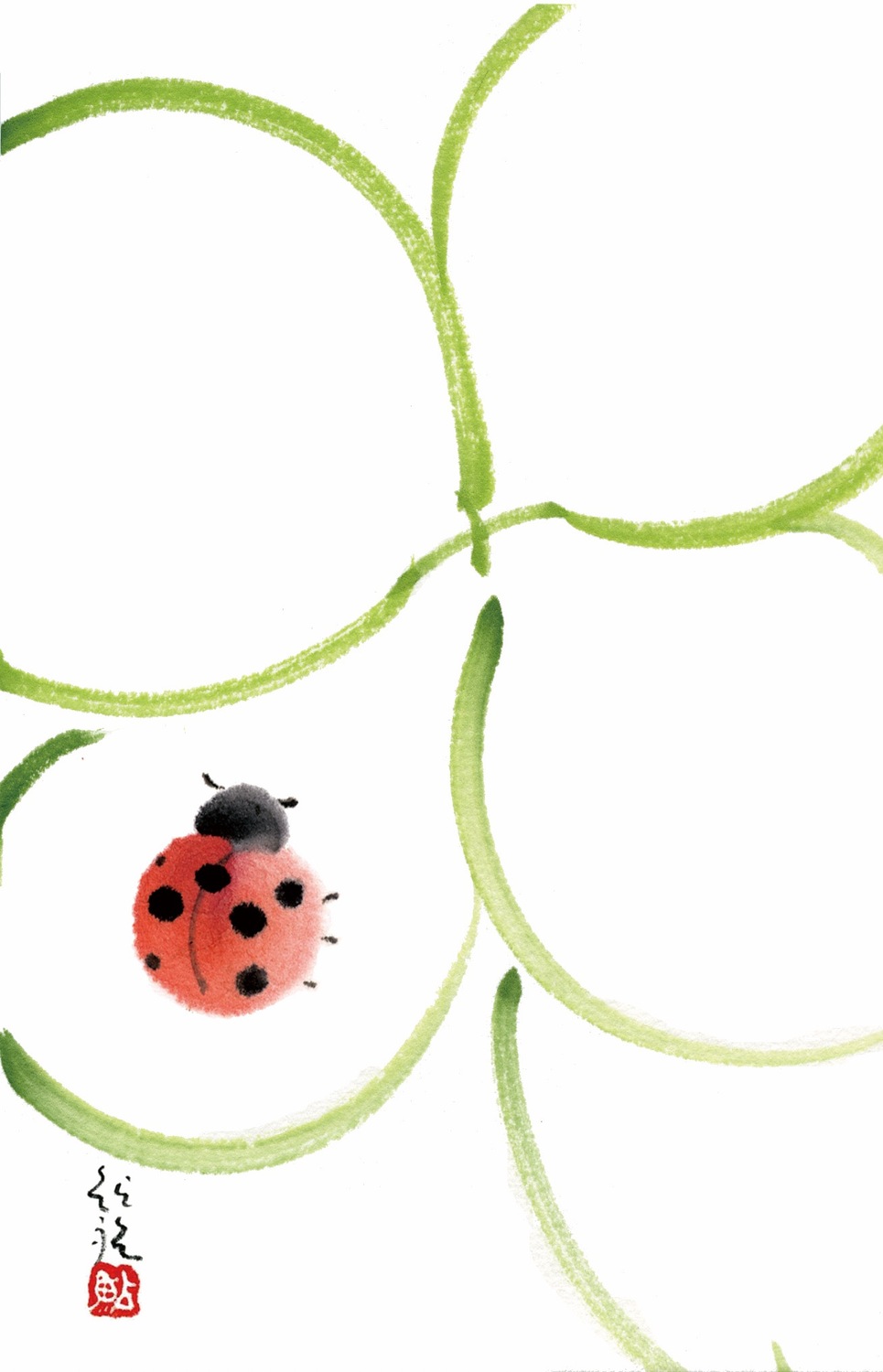 少ない筆遣いで、四季折々の植物や、可愛い動物、風物などをはがきに描きます。
