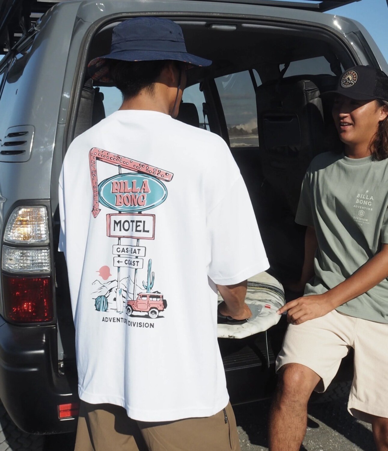 左胸と背面に、サーフトリップの道中にあるモーテルサインのグラフィックをプリント。